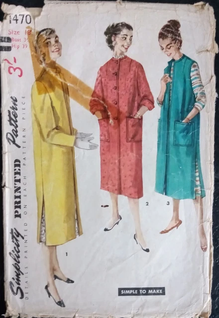 Vintage 1950 S Simplicity 1470 Sewing Pattern Coat Vest 3 Designs Size 18 4 99 Picclick Uk